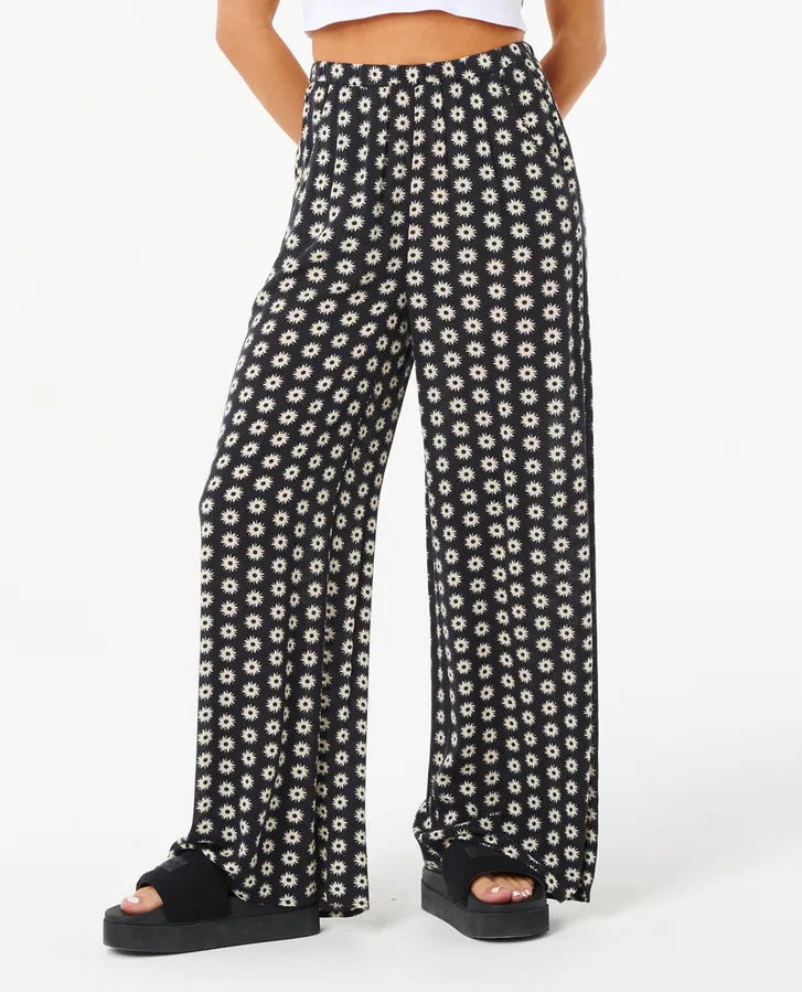 Embrace the fluid grace of the Cala Nights Beach Pant, your new essential for every seaside escape. Crafted from a light and airy crinkle fabric, these pants move with an ethereal quality, perfect for strolling along the shore or enjoying a relaxed evening. The charming all-over print enhances their laid-back appeal, while the adjustable elastic waist guarantees a flawless fit. Whether layered over your bikini or styled with a simple tee, these pants are the ultimate in throw-on-and-go elegance for all your coastal adventures.