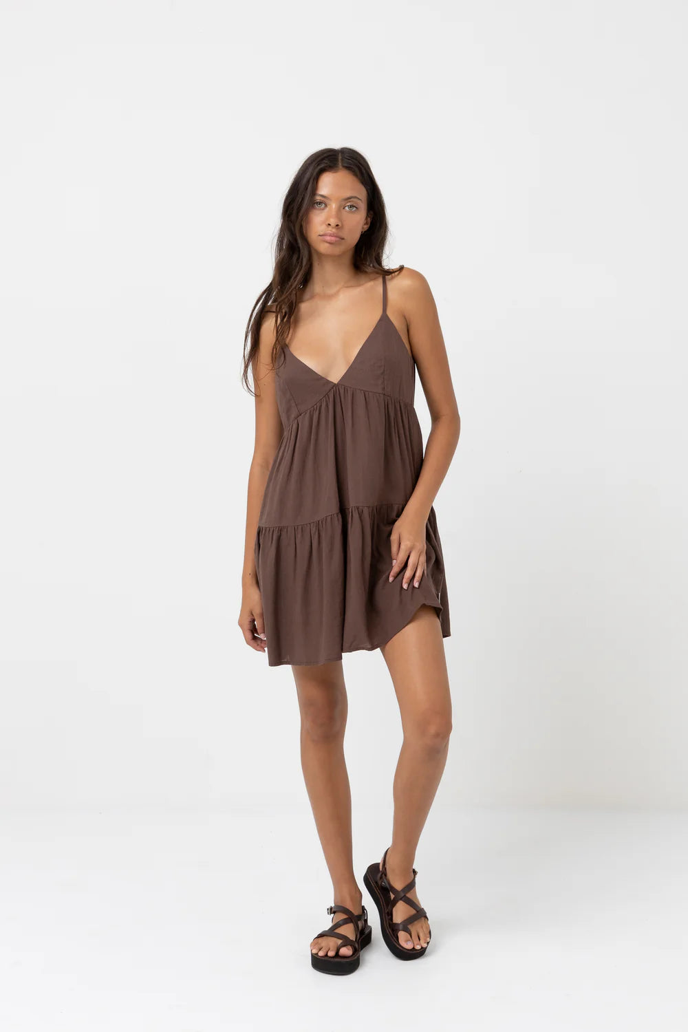 With a fitted bodice, deep V neckline and full sweeping hemline, the Classic Tiered Midi Dress is sure to make a statement. Delivering an elegant coastal design that can be worn between dinner dates, and beach walks both.