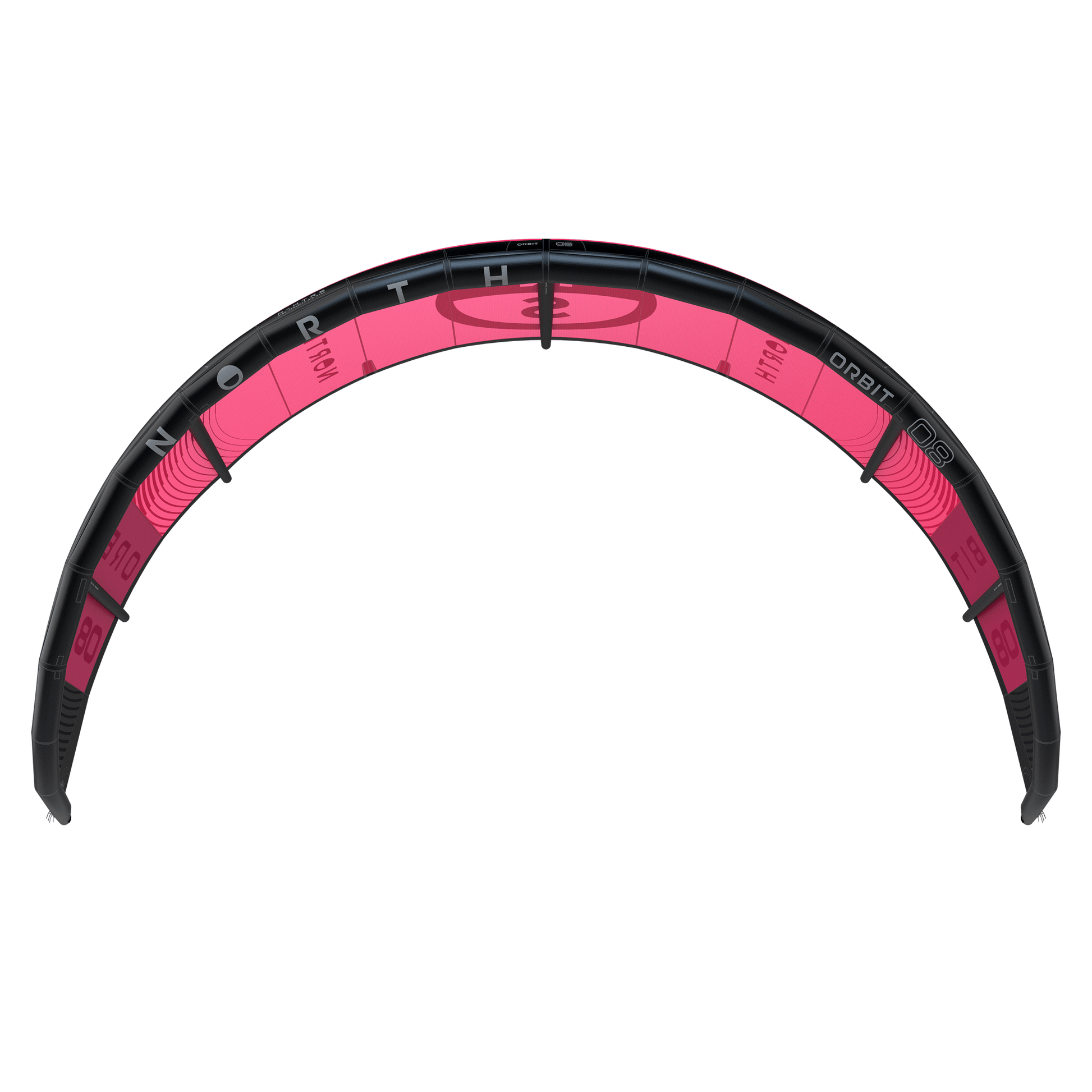 Committing to overpowered airs and megaloops in gusty conditions demands an unwavering trust in your kite. Our iconic premier 5-strut kite delivers incredible top-end control and allows you to hold down more power than any other kite per square metre. Big jumps. Big hang time. Big wind range. The Orbit rockets you upwind fast, with effortless steering, extreme boosting and hangtime guaranteed to take your breath away. For 2024 we’ve smoothed out the shape of the LE, introducing a continuous curved arc that is slightly narrower in the shoulders and wider in the wingtips. It’s quick. The wingtips have a more bi-elliptical shape for reduced drag and faster turning speed, while a slightly deeper profile in the centre creates more lift. Changes to the wingtip inspired a fully reworked bridle and attachment point positioning, for the most stable Orbit yet. The kite feels even more reliable and forgiving in overpowered, gusty conditions yet retains its ability to fly forward and catch you in kite loops. It's intuitive. Riders of all abilities can experience the best of both worlds, without worrying about your kite’s position in the sky. It’s more responsive in all conditions. In the smaller sizes we’ve lowered the aspect ratio slightly and refined profiles for improved hangtime and a faster, tighter turning radius for the doubles and S-loops. In the bigger sizes we have updated the profiles for a more lively and reactive feel, with increased low end performance for heavier riders. We've also reduced the kite's overall weight with lighter bladders now in every size. Lighter weight means your kite flies faster, sooner, because you need less wind to get the kite up in the sky. Tested by nature, proven on the podium. The Orbit has your back when the rules of gravity don't apply.
