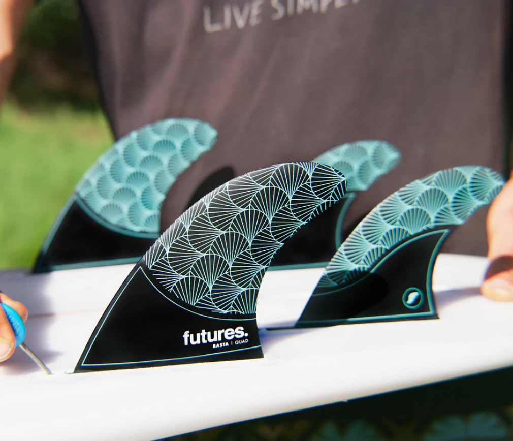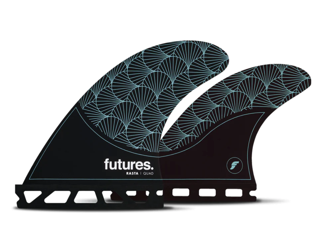 The Rasta Quad, designed by Australian freesurfing icon Dave Rastovich, is a versatile set that will suit almost any quad option board. The honeycomb construction combined with Futures’ V2-Foil on the front fins creates a looser feel, allowing for high-speed surfing and quick direction changes.