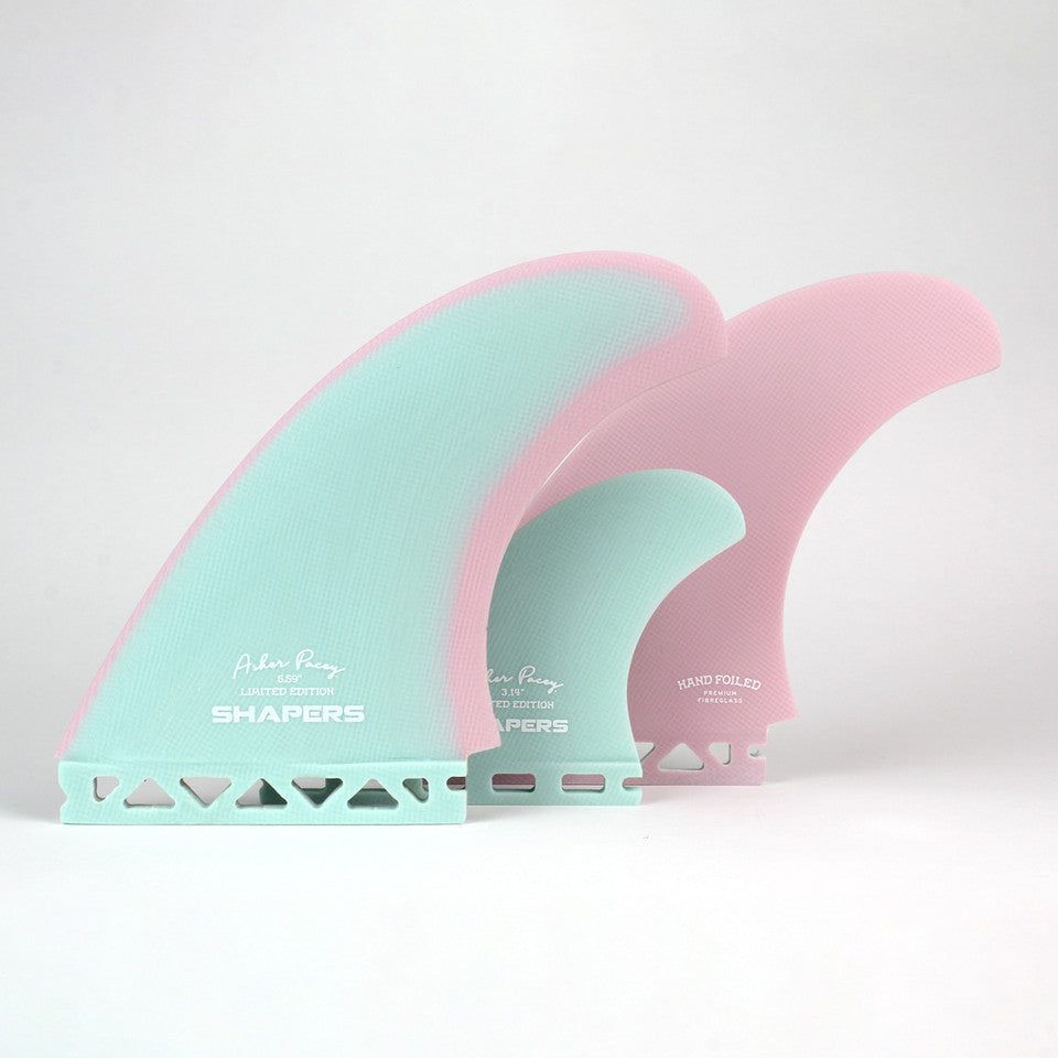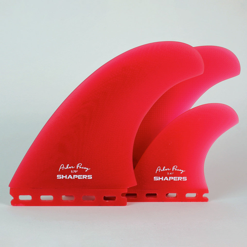 The AP5.79” Twin Fin sets are inspired by Asher Pacey’s stylish and progressive Twin Fin surfing. The AP Twin Fins redefine the traditional approach to flat and lateral twin fin surfing, bridging the gap between Twin Fins and Thrusters. The AP Twin Fins are designed to provide maximum drive, speed and hold through turns whilst maintaining a lively, free flowing ride that is iconic to twin fin surfing.